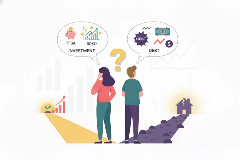 Vous avez du mal à décider s’il faut rembourser une dette à intérêt élevé ou investir dans votre CELI ou REER? Ce guide explique la mathématique et la psychologie derrière le dilemme dette vs. investissement pour les Canadiens.